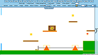A level with platforms Open Platform 2 ( https://mpottage.itch.io/platform2 ), click "Run Game" and then click on the "Level Builder" button: The player is a blue rectangle, controlled with the Left/R...